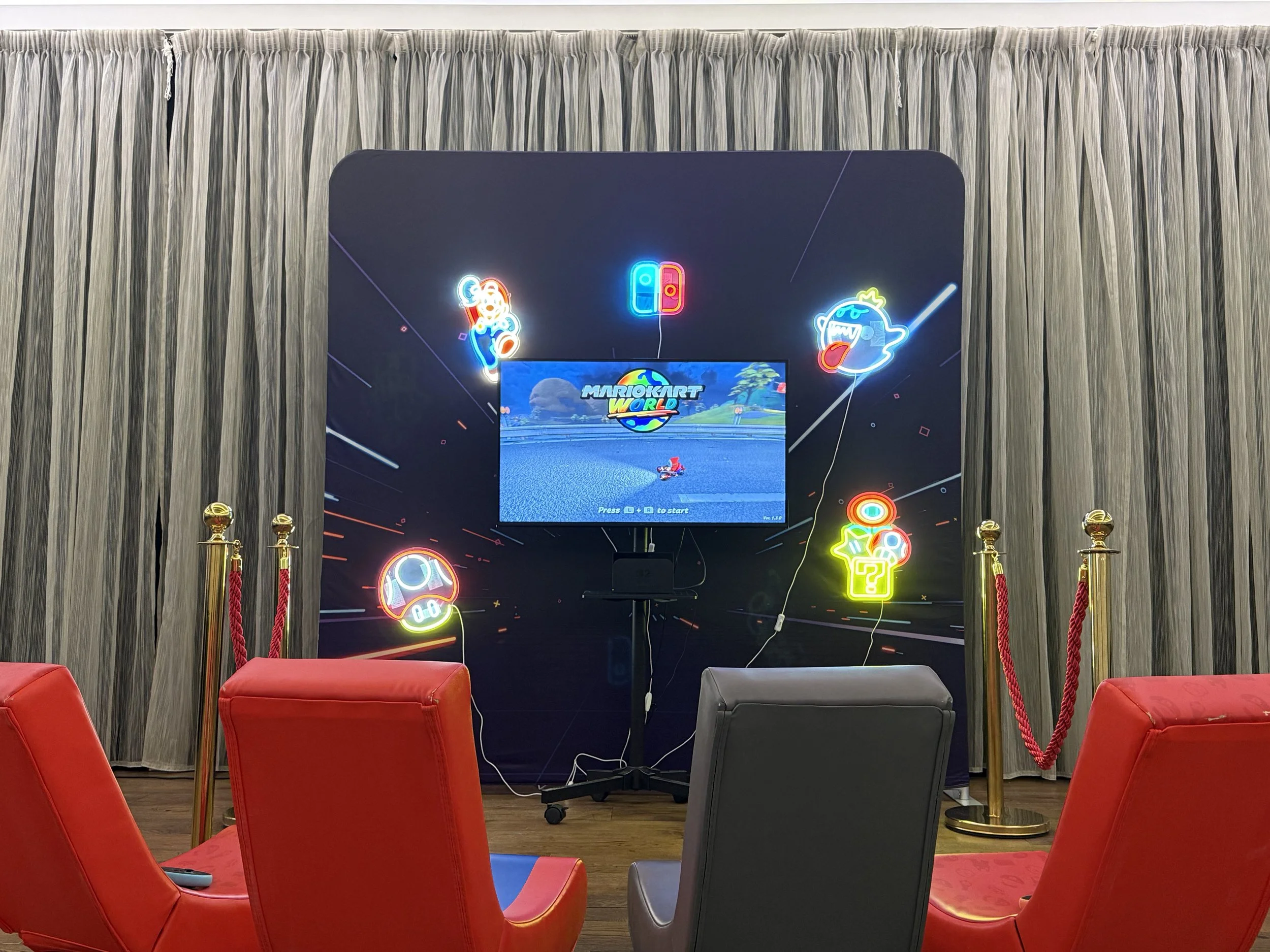 Mario Kart World on the Nintendo Switch 2, with 4 controllers & 4 X-Rockers.